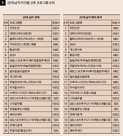 º¸¿©Áִµ¥, 20´ë ³²ÀÚ´Â µå¶ó¸¶°¡ 6°Ç, 20´ë ³²ÀÚ Çìºñºä¾îÀÇ
