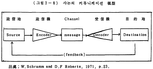 »þ³íÀÇ Ä¿¹Â´ÏÄÉÀÌ¼Ç ¸ðÇü¿¡¼´Â ¹ß½ÅÁö(source)¿Í ¸ñÀûÁö(destination)¶ó°í ÇÏ´Â 2°³ÀÇ »óÀÌÇÑ Á¤º¸°ü°è°¡ ÀÖ¾î¼ ¹ß½ÅÁö·ÎºÎÅÍ ÀÌ ¾çÀÚ¸¦ ¿¬°áÇϴ ä³ÎÀ» ÅëÇØ¼ ¿î¹ÝµÇ´Â ½ÅÈ£(signal)°¡ ¸ñÀûÁö¿¡ ´ëÇØ ¿µÇâÀ» ÁÖ´Â °úÁ¤ÀÌ ³ªÅ¸³ª ÀÖ´Ù. <±×¸²3-8>ÂüÁ¶