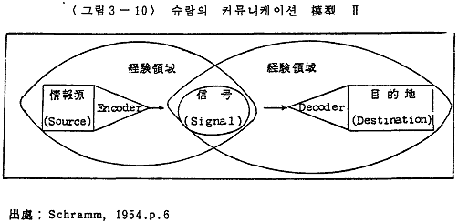 ½´¶÷Àº ¶ÇÇÑ µÎ °³Ã¼°¡ ±âÈ£À» ¸Åü·Î ¼·Î °øÅëµÈ ÀÇ¹Ì Áï, °°Àº °æÇ迵¿ª(firld of experience)À» °øÀ¯ÇØ ³ª°¡´Â °úÁ¤À» <±×¸²3-10>°ú °°Àº ±â´ÉÀû ¸ðÇüÀ» ÅëÇØ ¼³¸íÇϰí ÀÖ´Ù. ÀÌ·¯ÇÑ Ä¿¹Â´ÏÄÉÀ̼ǰúÁ¤¿¡¼´Â °¢ÀÚ°¡ °¡Áø °æÇ迵¿ªÀ» ¶æÇÏ´Â µÎ °³ÀÇ ¿øÀÌ ¸¹ÀÌ °ãÄ¥¼ö·Ï Ä¿¹Â´ÏÄÉÀÌÅÍ¿Í ¼ö¿ëÀÚ »çÀÌ¿¡ Ä¿¹Â´ÏÄÉÀ̼ÇÀÌ ÀßÀÌ·ç¾î Áø °ÍÀ¸·Î º¼ ¼ö ÀÖ´Ù´Â °ÍÀÌ´Ù.
