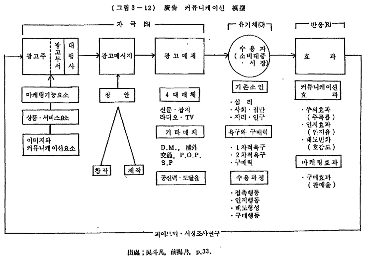 Ä¿¹Â´ÏÄÉÀÌ¼Ç °úÁ¤¿¡ ´ëÇØ¼´Â ¿©·¯ °¡Áö À̰ßÀÌ ÀÖ´Ù. ±×·¯³ª °øÅëÀûÀÎ °ÍÀº ¾î¶°ÇÑ Ä¿¹Â´ÏÄÉÀÌ¼Ç »óȲ¿¡¼´Â Á¤º¸¿ø(source)ÀÌ Á¤º¸(message(¸¦ ¸¸µé¾î ³»°í, ÀÌ Á¤º¸´Â ¾î¶² Àü´Þ°úÁ¤(channel)À» ÅëÇØ ´ë»óÀÚ(audience)¿¡°Ô Àü´ÞµÇ¾î ¾î¶² ¹ÝÀÀ(response)À» º¸ÀÌ°Ô µÈ´Ù´Â °ÍÀÌ´Ù.