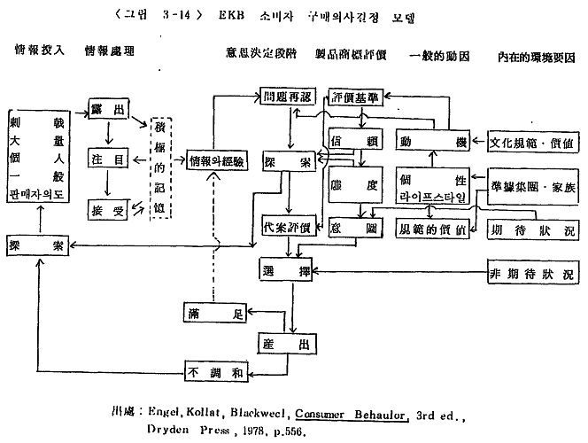 ¼Òºñ´ÙÀÇ ±¸¸ÅÀÇ»ç°áÁ¤°ú ±×¿¡ µû¸¥ ÇൿÀº ÀϹÝÀûÀ¸·Î Àß ¾Ë·ÁÁø ¼ÒºñÀÚ ÇൿÀÇ ÅëÇÕÀû ¸ðµ¨(intergrative model)ÀÎ EKB(Engel, Kollat, Blackwell) Model°ú °°´Ù. <±×¸²3-14>ÂüÁ¶