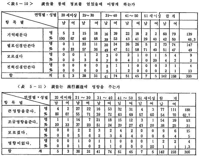 <Ç¥5-10>¿¡¼ º¸¸é ±¤°í¸¦ ÅëÇØ Á¤º¸¸¦ ¾ò¾úÀ» ¶§ÀÇ Åµµ¸¦ ºÐ¼®ÇÑ °á°ú ÀüüÀûÀ¸·Î 46.3%°¡ ±â¾ïÇØ µÐ´Ù´Â °ÍÀ¸·Î ³ªÅ¸³µ´Âµ¥ ÀÌ´Â ´ëü·Î ³ôÀº ÀÎÁöÀ²À̶ó°í ÆÇ´ÜµÈ´Ù. 20´ë ¹Ì¸¸Àº ÀþÀº û¼Ò³âÃþÀÌ ÀÎÁöÀ²ÀÌ ³ôÀ¸¸ç ³ªÀ̰¡ µé¼ö·Ï ³·¾ÆÁö´Â °ÍÀ¸·Î ³ªÅ¸³µ´Ù. ¼ºº°·Î´Â ³²¼ºº¸´Ù ¿©¼ºÀÌ ³ô¾ÒÀ¸¸ç, Á÷¾÷º°·Î´Â ÀÚÀ¯¾÷ 54%, ȸ»ç¿ø 52%, Çлý 52%·Î ÀÎÁöÀ²ÀÌ ³ô°Ô ³ªÅ¸³µ´Ù.