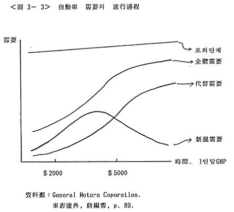 ½Â¿ëÂ÷ ¼ö¿ä´Â ½Å±Ô¼ö¿ä, Ãß°¡¼ö¿ä ¹× ´ëü¼ö¿ä µîÀ¸·Î ±¸¼ºµÇ´Âµ¥ ÀÌ·¯ÇÑ Á¦¼ö¿äÇàÅÂÀÇ ±Ô¸ð´Â ÀÚµ¿Â÷ º¸À¯´ë¼ö¿¡ ÀÇÇØ ¿µÇâÀ» ¹Þ´Â´Ù. Áï, ½Â¿ëÂ÷ º¸±ÞÀ²ÀÌ ³·Àº ³ª¶óÀÇ ½Â¿ëÂ÷ ¼ö¿ä´Â °ÅÀÇ ½Å±Ô¼ö¿ä¿¡ ÀÇÁ¸ÇÏ°Ô µÇ³ª ½Â¿ëÂ÷ º¸±ÞÀ²ÀÇ Áõ°¡¿Í ÇÔ²² ´ëü¼ö¿äÀÇ ºñÁßÀÌ Ä¿Áö°Ô µÈ´Ù.78) <µµ 3-3 ÂüÁ¶>