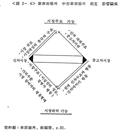 µô·¯´Â Áß°íÂ÷½ÃÀå°ú ½ÅÂ÷½ÃÀåÀÇ ¿¬°è·Î¼µµ ±× µµÀÔ Çʿ伺ÀÌ ´ëµÎµÇ´Âµ¥ <µµ 3-4>¿¡¼ º¸µíÀÌ ½ÅÂ÷ ÆÇ¸Å´Â Áß°íÂ÷½ÃÀå°ú ¿¬°èµÈ´Ù.80) Áï, ½ÅÂ÷½ÃÀåÀº Áß°íÂ÷½ÃÀåÀÇ ¼ö¿ä°ø±ÞÀÇ ¼º¸³À» À§ÇØ ½ÃÀåÁÖµµ±â´ÉÀ» °®´Âµ¥, ÀÏÂ÷ÀûÀ¸·Î ½ÃÀåÀÇ ±Ô¸ð¿Í Á¾·ù ¹× ½ÃÀå´ë»ó¿¡ ´ëÇÑ ±¸¼ºÀ¸·ÎºÎÅÍ ´ëü¿¡ À̸£±â±îÁö ¿µÇâÀ» ¹ÌÄ£´Ù. ½ÃÀåÆÄ¾Ç±â´ÉÀº º»ÁúÀûÀ¸·Î ÀáÀç ½ÅÂ÷ ¼ÒºñÀÚÀÇ ÀÇ»ç°áÁ¤¿¡ Áß¿äÇÑ °áÁ¤¿äÀΰú ½ÅÂ÷¸ÞÀÌÄ¿ÀÇ µ¿ÇâÀ» ÆÄ¾ÇÇÑ´Ù. ÀÌ·¸µíÀÌ ½ÅÂ÷½ÃÀå°ú Áß°íÂ÷½ÃÀåÀº ½ÃÀåÁÖµµ±â´É°ú ½ÃÀåÆÄ¾Ç±â´É Â÷¿ø¿¡¼ ¿¬°è¼ºÀ» ÀÌ·ç°í ÀÖ´Ù.81)