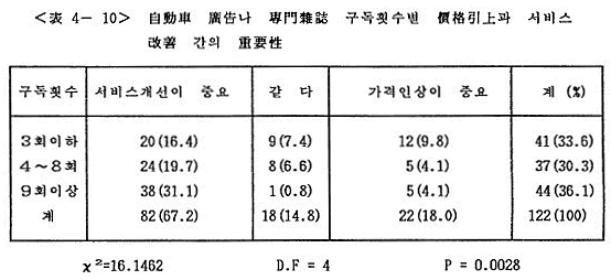µô·¯Á¦ µµÀÔÀ¸·Î ÀÎÇÑ °¡°ÝÀλó°ú ¼ºñ½º °³¼±°£ÀÇ Á߿伺Àº ÀÚµ¿Â÷ ±¤°í³ª Àü¹®ÀâÁö ±¸µ¶È½¼ö¿¡ µû¶ó Â÷À̰¡ ³´Ù. <Ç¥ 4-10>