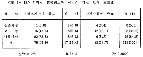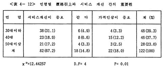 µô·¯Á¦ µµÀÔÀ¸·Î ÀÎÇÑ °¡°ÝÀλó°ú ¼ºñ½º °³¼±°£ÀÇ Á߿伺Àº ¿¬·É ¹× Çз¿¡ µû¶ó Â÷À̰¡ ÀÖ´Ù. <Ç¥ 4-12, Ç¥ 4-13>