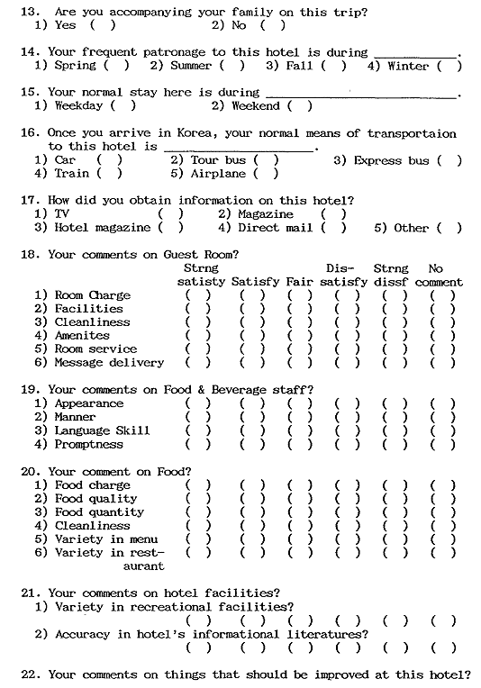 3. Training department should be established in a hotel and enforce employee education and training. Moeover, the employee training which is done inother institution should be practical rather than formal.