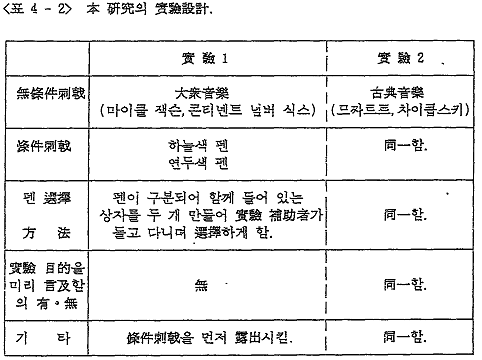ù°, ¹«Á¶°ÇÀÚ±ØÀ» ´ëÁßÀ½¾Ç°ú °íÀüÀ½¾ÇÀ¸·Î ³ª´©°í ÀÌ¿¡ µû¶ó ½ÇÇè 1°ú ½ÇÇè 2·Î ±¸ºÐÇÏ¿´´Ù. µÎ ½ÇÇèÀÇ Â÷ÀÌÁ¡Àº ´ÜÁö ¹«Á¶°ÇÀÚ±ØÀÌ ´Ù¸£´Ù´Â °ÍÀÌ´Ù. ½ÇÇè°úÁ¤Àº ¸ðµÎ °°À¸³ª ½ÇÇè 1¿¡¼´Â ´ëÁßÀ½¾ÇÀ» ¹«Á¶°ÇÀÚ±ØÀ¸·Î »ç¿ëÇÏ¿´°í, ½ÇÇè 2¿¡¼´Â °íÀüÀ½¾ÇÀ» »ç¿ëÇÏ¿´´Ù. À̰ÍÀº ¸¸¾à Á¶°ÇÈ È¿°ú°¡ ¹ß»ýÇÑ´Ù¸é ½ÇÇè°úÁ¤ÀÌ µ¿ÀÏÇÒ ¶§¿¡ ¹«Á¶°ÇÀڱؿ¡ µû¶ó Á¶°ÇÈ È¿°ú°¡ ´Ù¸£°Ô ¹ß»ýÇÏ´ÂÁö, Áï Á¤¸» ¹«Á¶°ÇÀÚ±ØÀÇ Á¾·ù°¡ Á¶°ÇÈ È¿°úÀÇ À¯.¹«¿Í °ü°è°¡ ¾ø´Â °ÍÀÎÁö¸¦ ¸¼È÷±â À§ÇÑ °ÍÀÌ´Ù.