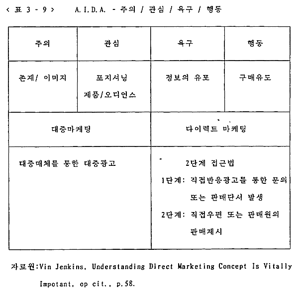 »õ·Î¿î ±â¾÷Ȱµ¿À» ¼º°øÀûÀ¸·Î ¼öÇàÇϱâ À§Çؼ ´ÙÀÌ·ºÆ® ¸¶ÄÉÆÃÀÌ AIDA ¸ðµ¨ÀÇ ½É¸®´Ü°è»ó¿¡¼ ¾î¶°ÇÑ ¿ªÇÒÀ» ¼öÇàÇÏ´Â Áö¸¦ »ìÆìº¸ÀÚ -ÁÖÀÇ(awareness)´Â ¼ÒºñÀÚµé·Î ÇÏ¿©±Ý ±â¾÷ ¶Ç´Â »óÇ¥ÀÇ Á¸À縦 ÀνÄÇϰí À̹ÌÁö¸¦ Çü¼ºÇÏ°Ô ÇÏ´Â °ÍÀ¸·Î¼ ÀÌ´Â ´ëÁß±¤°í¿¡ ÀÇÇØ Çü¼ºµÉ ¼ö ÀÖ´Ù. ¸¶Âù°¡Áö·Î °ü½É(interest)Àº Á¦Ç°À» °æÀï»óȲ¿¡ ´ëÀÀÇÏ¿© ÀûÇÕÇÑ ¿Àµð¾ð½º¿¡°Ô Æ÷Áö¼Å´×(Positioning)ÇÔÀ¸·Î½á ³ôÀÏ ¼ö ÀÖ´Ù. ÀÌ·¯ÇÑ »óȲ¿¡¼ ´ÙÀÌ·ºÆ® ¸¶ÄÉÆÃÀº ¿å±¸(desire)ÀÇ Ã¢Á¶¿Í Çൿ(action)À» ¹ß»ý½Ã۴µ¥ ±àÁ¤ÀûÀÎ ¿ªÇÒÀ» ¼öÇàÇÒ ¼ö ÀÖ´Ù. Á¤º¸ÀÇ À¯Æ÷¿Í ±¸¸ÅÀ¯µµ´Â ´ÙÀ½¿¡ ¼³¸íÇÒ 2´Ü°è °í°´È¹µæ ÇÁ·Î±×·¥¿¡ ÀÇÇØ¼ ¼öÇàµÇ¾îÁú ¼ö ÀÖ´Ù.