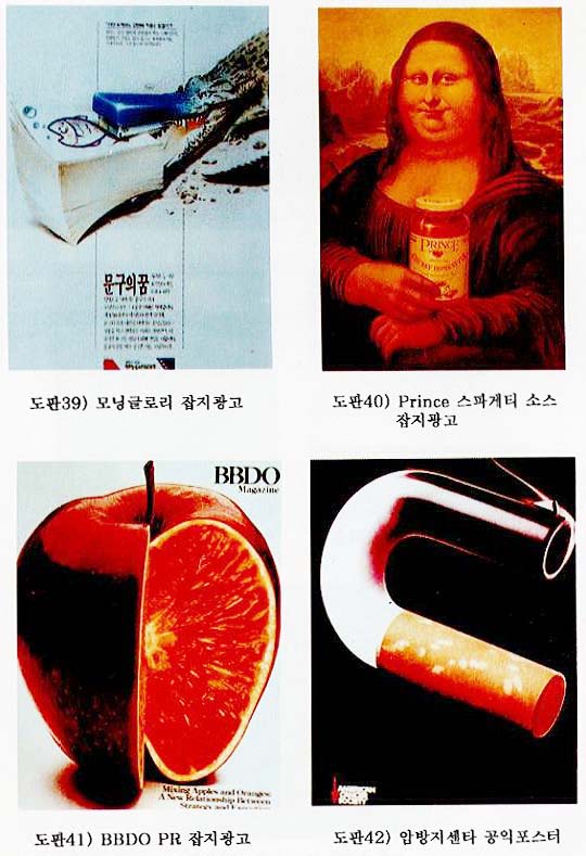 µµÆÇ 41Àº º¸¿©Áö´Â ºñÁê¾óÀº °á°ú ¼ÓÀÌ »ç°ú¿Í ¿À·»Áö·Î Ç¥ÇöµÈ ºñÇ×»ó¼ºÀûÀÎ ÇüÅÂÀÌ´Ù. »ç°ú¿Í ¿À·»Áö¿¡ ´ëÇÑ ÇüÅÂÀÇ Áö°¢Àû Ç×»ó¼ºÀº À̿Ͱ°Àº »õ·Î¿î Á¶°ÇÀÇ ÇüÅ¿¡ ´ëÇÑ °¥µîÀ» ÀÏÀ¸Å°¸é¼ ½Ã¼± À¯µµ¸¦ °¡´ÉÇÏ°Ô Çϰí, ¶ÇÇÑ ¸Þ½ÃÁöÀÇ Àǹ̸¦ Àû±ØÀûÀ¸·Î Ž»öÇÏ°Ô ÇÏ¿© Àü´Þ·ÂÀ» ³õ¿©ÁÖ´Â È¿°ú¸¦ °®´Â´Ù. '»ç°ú¿Í ¿À·»ÁöÀÇ È¥ÇÕ, ±×°ÍÀº Àü¼ú°ú ½ÇÇàÀÇ »õ·Î¿î °ü°èÀÌ´Ù' ¶ó´Â ³»¿ëÀ» Á÷Á¢ÀûÀÌ°í ¼³µæÀûÀÎ ±âȣǥÇöÀ¸·Î ³ªÅ¸³»±â À§ÇÏ¿© ÀÏ»óÀûÀÎ »ç°úÀÇ ¼ÓÀ» ¿À·»Áö·Î º¯ÇüÇÏ¿© º¸¿©ÁÖ°í ÀÖ´Ù.