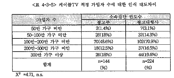 3-5 ÄÉÀ̺íTV ±¤°í¸¦ À§ÇÑ ÀûÁ¤ °¡ÀÔ°¡±¸¼ö¿¡ ´ëÇÑ ÀÎ½Ä ÅµµÂ÷ÀÌ