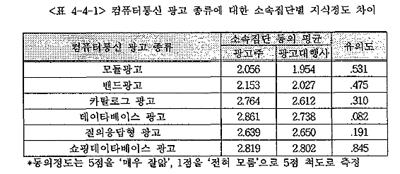 Á¦4Àý ÄÄÇ»ÅÍ Åë½Å ±¤°í ¹× Á÷Á¢À§¼º¹æ¼Û±¤°í¿¡ ´ëÇÑ ¼Ò¼ÓÁý´Üº° ŵµ¿Í Áö½Ä Æò±ÕÂ÷ÀÌ