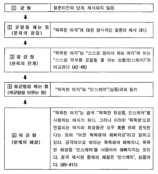 µ¿½Ã¿¡, ±¤°í ÅØ½ºÆ®ÀÇ Ç¥Ãþ ¼»ç¸¦ ÀÌ·ç°í ÀÖ´Â °è¿Ã¼ÀÇ ´ÜÀ§µéÀº ¼»çÀÇ ½ÉÃþ±¸Á¶ ºÐ¼®À¸·Î µå·¯³ª°Ô µÈ´Ù. ÅëÇÕü¸¦ ÀÌ·ç´Â ƯÁ¤ ´ÜÀ§µéÀÌ ¼±Åà °¡´ÉÇÑ ¿©·¯ ´ÜÀ§µé Áß¿¡ ´Ù¸¥ °ÍÀ» Á¦Ä¡°í ¼±ÅÃµÇ°Ô µÈ ¹è°æ°ú ÀÌÀ¯¸¦ ¼Ò±ÞÇØ ³ª°¨À¸·Î½á °è¿Ã¼¸¦ Á¶Á÷ÇÏ´Â ÀÏÁ¤ÇÑ ¹æÇâÀ» ÆÄ¾ÇÇØ ³¾ ¼ö ÀÖ´Ù. ´Ù½Ã ¸»ÇÏÀÚ¸é, ±¤°í ÅØ½ºÆ®¿¡ µå·¯³ °³º° ´ÜÀ§µéÀº ¿©·¯ °¡Áö Çö½Ç¿¡ ´ëÇÑ ¹üÁÖµé Áß¿¡ ÇϳªÀÇ ¹üÁÖ°¡ ¼±ÅõǾîÁø °ÍÀ̶ó°í ÇϰڴÙ. ÀÌ´Â ·¹ºñ-½ºÆ®·Î½º(Livi-Strauss)°¡ Çö½Ç¿¡ ´ëÇÑ Àǹ̺ο© °úÁ¤ÀÇ ÇÙ½ÉÀ» 'Çö½ÇÀÇ ¹üÁÖÈ'(categorization)·Î °£ÁÖÇϸç, ´Ù½Ã ¹üÁÖÈ °úÁ¤ÀÇ ÀÏÂ÷ÀûÀÎ ¹æ½ÄÀº ÀÌÇ״븳ÀÇ ±¸Á¶¸¦ ÅëÇØ¼ ÀÌ·ç¾îÁø´Ù´Â ³íÀÇ¿¡ ±Ù°ÅÇÑ´Ù. ÅØ½ºÆ®¿¡ ÀáÀçµÇ¾î µå·¯³ªÁö ¾Ê´Â À̸éÀÇ Àǹ̵éÀ» ÀÌÇ״븳ÀÇ ¿øÄ¢¿¡ µû¶ó ºÐ¼®Çغ½À¸·Î½á ½ÉÃþ¿¡ Á¸ÀçÇÏ´Â ¼»ç±¸Á¶¸¦ ¹ß°ßÇØ ³¾ ¼ö ÀÖ´Â °ÍÀÌ´Ù.