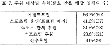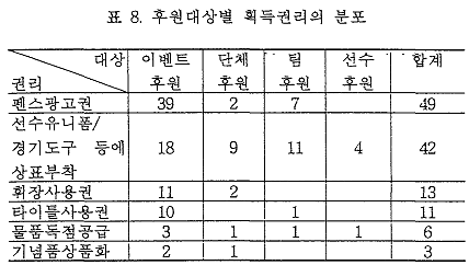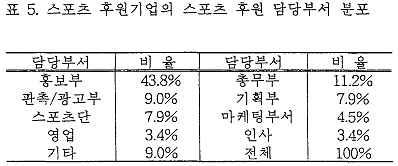 À§ÀÇ »çÇ×Àº ½ºÆ÷Ã÷¸¦ ÈÄ¿øÇÏ´Â ºÎ¼°¡ Àü¹®ÀûÀ¸·Î Ãë±ÞÇÏ´Â ºÎ¼¿¡¼ ´Ù·ç¾îÁö´Â °ÍÀÌ ¾Æ´Ï¶ó Ãѹ«ºÎ, È«º¸ºÎ µîÀÇ ºÎ¼¿¡¼ ºÎ¼ö ÀûÀÎ ¾÷¹«·Î ´Ù·ç¾îÁüÀ» ¾Ë ¼ö ÀÖ´Ù. ÀÌ´Â °¢ ±â¾÷ÀÇ ½ºÆ÷Ã÷ ÈÄ¿øÀÇ ±Ô¸ð°¡ ±×´ÙÁö Å©Áö ¾Ê°í ½ºÆ÷Ã÷ ÈÄ¿ø¿¡ ´ëÇÑ Àü·«Àû °¡Ä¡¿¡ ´ëÇÑ ÀνÄÀÌ ¾ÆÁ÷ ¸ðÀÚ¶ó±â ¶§¹®ÀÌ´Ù.