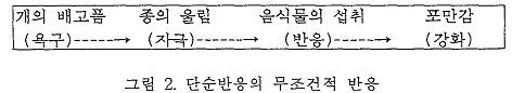ÆÄºí·ÎÇÁ´Â ÀÌó·³ ¶È°°Àº °úÁ¤À» µÇÇ®ÀÌÇÔ¿¡ µû¶ó ¹ß»ýµÈ ¹ÝÀÀ°ú ±× ÀڱذúÀÇ °ü°è¸¦ °È¹ýÄ¢ À̶ó°í ¸í¸íÇÏ¿´´Ù Áï, ¹è°¡ °íÆÍ´ø »óȲÀÌ °³¿¡°Ô °ÇÑ ¿å±¸¸¦ ´À³¢°Ô²û ¸¸µé¾ú°í, ÀÌ »óȲ¿¡¼ ¹ßÀÚ±¹¼Ò¸® ´Â ¶Ç ÇϳªÀÇ ÀÚ±ØÀ¸·Î º¯ÇßÀ¸¸ç, ±×ÈÄ À½½Ä¹° ¼·Ãë´Â ¹ÝÀÀÀ¸·Î ±×¸®°í À½½Ä¹° ¼·Ãë ÀÌÈÄ¿Í Æ÷¸¸°¨Àº °È·Î ¹Þ¾Æµé¿© Áø °ÍÀÌ´Ù. °È°úÁ¤ÀÌ ÀÚÁÖ ÀÌ·ç¾îÁö¸é¼ À̰°Àº °úÁ¤ÀÌ µÇÇ®À̵Ǿú°í ±× °á°ú ¹ßÀÚ±¹ ¼Ò¸®´Â ´Ü¼øÀڱؿ¡¼ ¹«Á¶°Ç ÀÚ±ØÀ¸·Î, À½½Ä¹° ¼·Ãë´Â ´Ü¼ø¹ÝÀÀ¿¡¼ ¹«Á¶°ÇÀû ¹ÝÀÀÀ¸·Î º¯ÈÇÏ¿´´Ù. À̸¦ ±×¸²À¸·Î ¼³¸íÇÏ¸é ´ÙÀ½°ú °°´Ù.