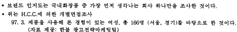 À§ÀÇ Æ÷Áö¼Å´× ¸Ê¿¡¼ º¸¾ÒµíÀÌ 10³âÀÌ Ã¤ ¾ÈµÈ ¿ª»ç¿¡ ºñÇÏ¸é ±â¾÷À̹ÌÁö ¹× ºê·£µå ÀÎÁöµµ°¡ ¸ðµÎ 3-4À§±ÇÀ̸ç 20´ë ÃÊ¹Ý ¿©¼ºµé¿¡°Ô ÀαⰡ ÀÖ´Ù´Â °ÍÀ» ¾Ë ¼ö ÀÖ¾ú´Ù.