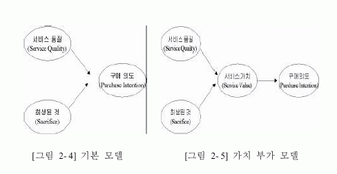 ƯÈ÷ °¡Ä¡´Â ±¸¸Å Àǵµ(purchase intention)¿Í ¼ºñ½º ǰÁú¿¡ ´ëÇÑ ÀνÄ(perception of service quality) ¶ÇÇÑ ±×°ÍÀ» À§ÇØ µéÀÎ Èñ»ý(sacrifice)µé »çÀÌÀÇ °ü°è ÆÄ¾Ç¿¡ ÀÖ¾î ÇÙ½É ±¸Á¶·Î ÀÛ¿ëÇÑ´Ù.