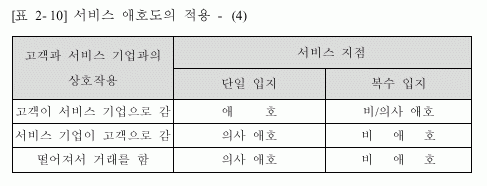 °í°´µéÀº ¼ºñ½ºÀÇ ¼º°ÝÀÌ À¯ÇüÀûÀÎ °ÍÀ¸·Î ÆÄ¾ÇµÇ¸é À§ÇèÀ» ´õ¿í Àû°Ô ´À³¢´Â °æÇâÀÌ ÀÖ´Ù. ¾Õ¼ ¾ð±ÞÇßµíÀÌ °í°´ÀÌ ´À³¢´Â À§ÇèÀÌ Å©¸é Ŭ¼ö·Ï ¾ÖÈ£µµ´Â Áõ°¡ÇÑ´Ù. µû¶ó¼ ¼ºñ½º ÇàÀ§ÀÇ À¯Çü¼ºÀÌ Áõ°¡ÇÑ´Ù¸é ¼ºñ½º ¾ÖÈ£µµ´Â °¨¼ÒÇÒ °ÍÀÌ´Ù. ÀÌ°Í ¶§¹®¿¡ ´ÙÀ½ <Ç¥ 2-4>ÀÇ »çºÐ¸é À§ÂÊ ºÎºÐÀÇ ¾ÖÈ£µµ°¡ ¾Æ·¡ ºÎºÐÀÇ °Íº¸´Ù ¾àÇÏ°Ô ³ªÅ¸³´Ù.
