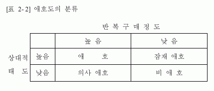ÀÌ·¸°Ô ¼³Á¤µÈ °³³ä-¹Ýº¹±¸¸Å Á¤µµ¿Í »ó´ëÀû ŵµ-À» ±â¹ÝÀ¸·Î ¾ÖÈ£µµ´Â <Ç¥ 2-2>¿Í °°ÀÌ 4°¡Áö·Î ³ª´©¾îÁø´Ù.