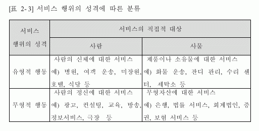 ÀÌ Ã¼°è´Â ¼ºñ½º ÇàÀ§°¡ À¯ÇüÀûÀΰ¡ ¹«ÇüÀûÀΰ¡ ¶Ç ¼ºñ½ºÀÇ Á÷Á¢ÀûÀÎ ´ë»óÀÌ »ç¶÷Àΰ¡ »ç¹°Àΰ¡¿¡ µû¶ó ¼ºñ½º¸¦ ºÐ·ùÇÑ´Ù.