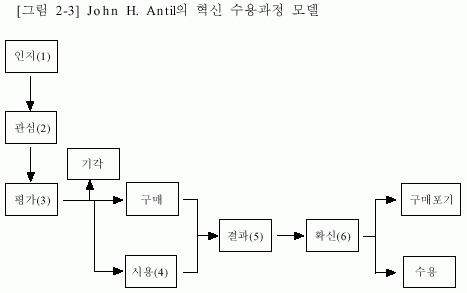 ³óÃÌ»çȸÇÐÀÚµéÀº ½ÅÁ¦Ç° ¼ö¿ë°úÁ¤À» ÀÎÁö´Ü°è(awareness stage), Èï¹Ì´Ü°è(interest stage), Æò°¡´Ü°è(evaluation stage), ½ÃÇè´Ü°è(trial stage), ¼ö¿ë´Ü°è(adoption stage)ÀÇ 5´Ü°è·Î ±¸ºÐÇÏ¿© ¼³¸íÇϰí Àִµ¥ À̸¦ ÀüÅëÀû 5´Ü°è¼³À̶ó ÇÑ´Ù.