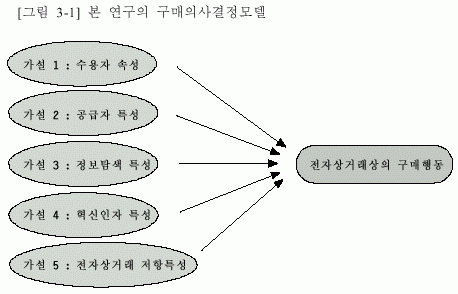 Áö±Ý±îÁö ¾ð±ÞÇÑ Çõ½ÅÀÇ ¼ö¿ë ¹× È®»ê¿¡ °üÇÑ ÀÌ·Ð ¹× ¸ðµ¨µéÀÌ ¿ì¸® ³ª¶ó ÀüÀÚ»ó°Å·¡ ¼ÒºñÀڵ鿡°Ô ¾î¶»°Ô Àû¿ëµÉ ¼ö ÀÖ´ÂÁö¸¦ °ËÁõÇØ º¸±â À§ÇØ Antill(1988)ÀÇ ¸ðµ¨°ú ±âÁ¸ÀÇ ¿¬±¸µéÀ» ¹ÙÅÁÀ¸·Î ÀüÀÚ»ó°Å·¡ÀÇ ±¸¸ÅÀÇ»ç°áÁ¤°úÁ¤ Áß ÃøÁ¤ °¡´ÉÇÑ º¯¼öµéÀ» ¼±ÅÃÇÏ¿© ³ªÅ¸³½ °ÍÀÌ <±×¸² 3-1>ÀÌ´Ù.