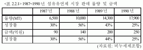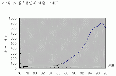 ÀÌ·¯ÇÑ »ç¿ë·ü°ú °ú°Å 5³â°£ÀÇ ½ÃÀå ¼ºÀå·üÀ» º¸¾ÒÀ» ¶§ ¼¶À¯À¯¿¬Á¦ ½ÃÀåÀº ¼º¼÷±â ½ÃÀåÀ¸·Î ºÐ¼®µÈ´Ù. ¡´±×¸² 1¡µÀÇ ¸ÅÃâ ±×·¡ÇÁ¿¡¼ º¸¸é ¼¶À¯À¯¿¬Á¦ ½ÃÀåÀº ·±Äª ÈÄ 15³â°£ÀÇ ±ä µµÀԱ⸦ °ÅÄ¡°í 1990³âÃÊ¿¡ ¼ºÀå±â¿¡ µé¾î¾úÀ¸¸ç, 1996³â¿¡ ¼º¼÷±â ½ÃÀå¿¡ µé¾î¼± °ÍÀ¸·Î ºÐ¼®µÈ´Ù. º» ¿¬±¸ÀÇ ¸ñÀûÀº Ç϶ôÇϰí ÀÖ´Â ¼¶À¯À¯¿¬Á¦ÀÇ ¼ºÀå°î¼±À» À§ÂÊÀ¸·Î ¿Ã¸± ¼ö ÀÖ´Â Àü·« âÃâ¿¡ ÀÖ´Ù.