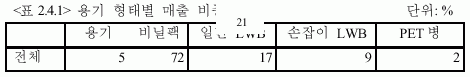 ù°, ¾×üÀÎ ³»¿ë¹°À» ¸®ÇÊÇϱ⿡ ºñ´ÒÆÑÀº ºÒÆíÇÏ´Ù. ¿ë±â¿¡ ºÎÀ» ¶§ ºñ´ÒÆÑÀ» Àâ°í º×±â°¡ ºÒÆíÇϰí, ³»¿ë¹°À» ½ñÀ» °¡´É¼ºÀÌ ÀÖ¾ú´Ù. µÑ°, °³ºÀÇÑ Á¦Ç°ÀÇ º¸°üÀÌ ¾î·Æ´Ù. ¿ë±âº¸´Ù Å« ±Ô°ÝÀÇ ºñ´ÒÆÑ Á¦Ç° ±¸ÀԽà ¿ë±â¿¡ ´ã°í ³²Àº ¾çÀ» º¸°üÇÏ±â ¾î·Æ´Ù. ºÐ¸» ¼¼Á¦ µîÀº º» ¿ë±â¿¡ º¸ÃæÇÏÁö ¾Ê°í ºñ´ÒÆÑ° ³õ°í ¾²´Â »ç¶÷µµ 25%¿¡ À̸¥´Ù. ¼Â°, ºñ´ÒÆÑ Á¦Ç°Àº ³»¿ë¹°ÀÇ »ö»ó°ú ÇâÀ» ±¸ÀÔÇÒ ¶§ ¼ÒºñÀÚ°¡ È®ÀÎÇÏ±â ¾î·Æ´Ù. ¿ì¸® ³ª¶ó ¼ÒºñÀÚ´Â Á¦Ç° ±¸ÀԽÿ¡ ÇâÀ» È®ÀÎÇÏ°í ±¸ÀÔÇϴ Ư¼ºÀ» º¸À̰í ÀÖ´Ù.(Sofres, 1998)