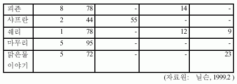 1999³â¿¡´Â ÇâÀÌ ÁÁ¾Æ¼°¡ 20%·Î Çâ¿¡ ´ëÇÑ ¼±È£°¡ ¿©ÀüÈ÷ °¡Àå ³ôÀº ±¸¸Å ¿äÀÎÀ̾úÀ¸³ª, ±× ´ÙÀ½ ¼øÀ§ÀÇ ÀÀ´äÀº º¯È°¡ ÄÇ´Ù. °¡°ÝÀÌ ½Î¼ ±¸ÀÔÇß´Ù´Â ÀÀ´äÀÌ 17%·Î Àú°¡°Ý ÁöÇâÀÌ ³ªÅ¸³µÀ¸¸ç, ±× ´ÙÀ½À¸·Î ÇâÀÌ ÀºÀºÇؼ°¡ 14%, ÇâÀÌ ¿À·¡°¡¼°¡ 14%·Î Çâ¿¡ ´ëÇÑ ´ÏÁî°¡ ¼¼ºÐȵǾúÀ½À» ¾Ë ¼ö ÀÖ´Ù. 1996³â 2À§¿´´ø ¾²´ø °ÍÀ̶ó¼´Â 13%·Î ±× ´ÙÀ½ ¼øÀ§¿´´Ù. ¹Ý¸é 1996³â 3,4À§¿´´ø ¿ÊÀÌ ºÎµå·¯¿öÁ®¼¿Í Á¤Àü±â ¹æÁö È¿°ú´Â 1999³â °¢°¢ 2%¿¡ ±×ÃÄ ±âº» ¼º´É¿¡ ´ëÇØ¼´Â Á¦Ç°°£ ǰÁúÂ÷°¡ Å©Áö ¾Ê´Ù°í Æò°¡ÇÔÀ» ¾Ë ¼ö ÀÖ´Ù.6)(HRC, 1996/ GMT, 1999)