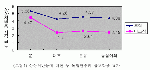 ±×¸²1¿¡¼ '¿î' ÀÌ¿ÜÀÇ À¯ÇüÀº Á¶ÀÛ¿©ºÎÀÇ Â÷ÀÌ¿¡ µû¶ó ºñ½ÁÇÑ ÇüÅÂÀÇ »ó»óÀû ¹ÝÀÀÀ» º¸À̳ª '¿î'À¯ÇüÀº Á¶ÀÛ¿©ºÎ¿¡ °ü°è¾øÀÌ ¸Å¿ì ³ôÀº »ó»óÀû ¹ÝÀÀÀ» ÁÖ°í ÀÖ´Ù.
