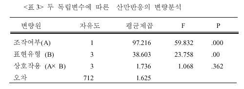 2.½Ã°¢Àû¼ö»ç Á¶ÀÛ¿©ºÎ¿Í Ç¥ÇöÀ¯Çü¿¡ µû¸¥ »ó»ó¹ÝÀÀ ¹× »ê¸¸¹ÝÀÀ