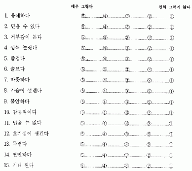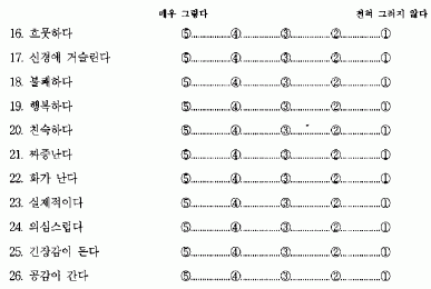 ¿©·¯ºÐÀº °¢ Ç׸ñ¸¶´Ù ¨ç¹ø¿¡¼ ¨ë¹ø±îÁö Çϳª¸¦ üũÇÏ¼Å¾ß Çϸç ÀÚ½ÅÀÌ °æÇèÇÑ ´À³¦À̳ª ±âºÐÀÇ Á¤µ¹¸¦ Ç¥½ÃÇÏ½Ã¸é µË´Ï´Ù.