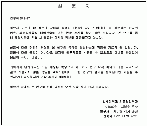 <ºÎ·Ï 1> ÇØ¿Ü½ÃÀå ÁøÃâ¾÷ü ´ë»ó ¼³¹®Áö