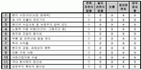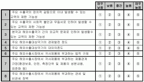 6. ÇØ¿Ü½ÃÀå Á÷Á¢ÁøÃâÀ» °áÁ¤ÇϼÌÀ» ¶§ ´ë»ó±¹°¡¸¦ ¼±Á¤Çϴµ¥ ÀÖ¾î ´ç½Ã¿¡ ¾Æ·¡ÀÇ ¿äÀεéÀÌ ¾î´À Á¤µµ·Î Á߿伺À» °®°í
