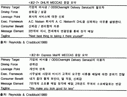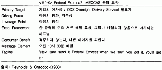Craddock(1988)ÀÌ Federal Express¿¡ ´ëÇÑ ±¤°íÀü·« ¿¬±¸¿¡¼ Á¦½ÃÇÑ °Íµé·Î »ìÆìº¸¸é ´ÙÀ½°ú °°´Ù<Ç¥2-7>,