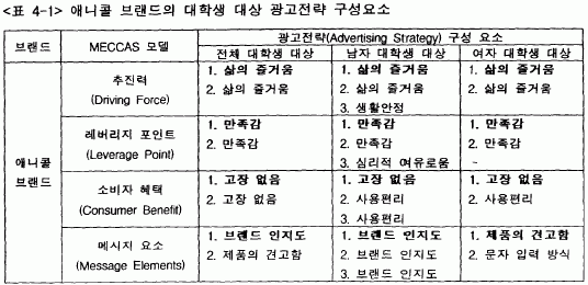 ±¤°íÀü·«ÀÌ ±¤°í´ë»ó(target)¿¡ µû¶ó ±¸¼º¿ä¼Ò°¡ ´Þ¶óÁ®¾ß ÇÔÀ» º¸¿©ÁÖ´Â °ÍÀ̶ó ÇÒ ¼ö ÀÖ´Ù. ƯÈ÷ ¿©ÀÚ ´ëÇлýÀº