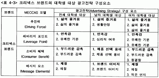 Å©¸®³Ø½º ºê·£µå¿¡ ´ëÇÑ ÀÀ´äÀÚ ´ëÇлý °¡Ä¡´Ü°èµµ(¼Ó¼º-±â´ÉÀû ÇýÅÃ-½É¸®Àû ÇýÅÃ-°¡Ä¡)¸¦ ÅëÇÕÇÏ¿© ¸ÞÄ«½º ¸ðµ¨ ±¤°íÀü·«