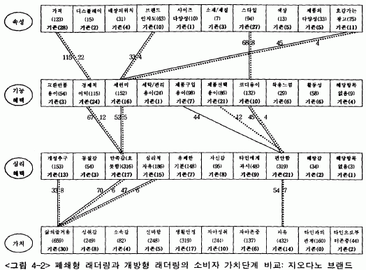<±×¸²4-2>´Â Áö¿À´Ù³ë ºê·£µå¿¡ ´ëÇÑ ´ëÇлý ¼ÒºñÀÚÀÇ ¼ö´Ü-¸ñÀû »ç½½ÀÌ·ÐÀÇ ±âÁ¸ °³¹æÇü ·¡´õ¸µ°ú ¼ÒÇÁÆ®¿þ¾î